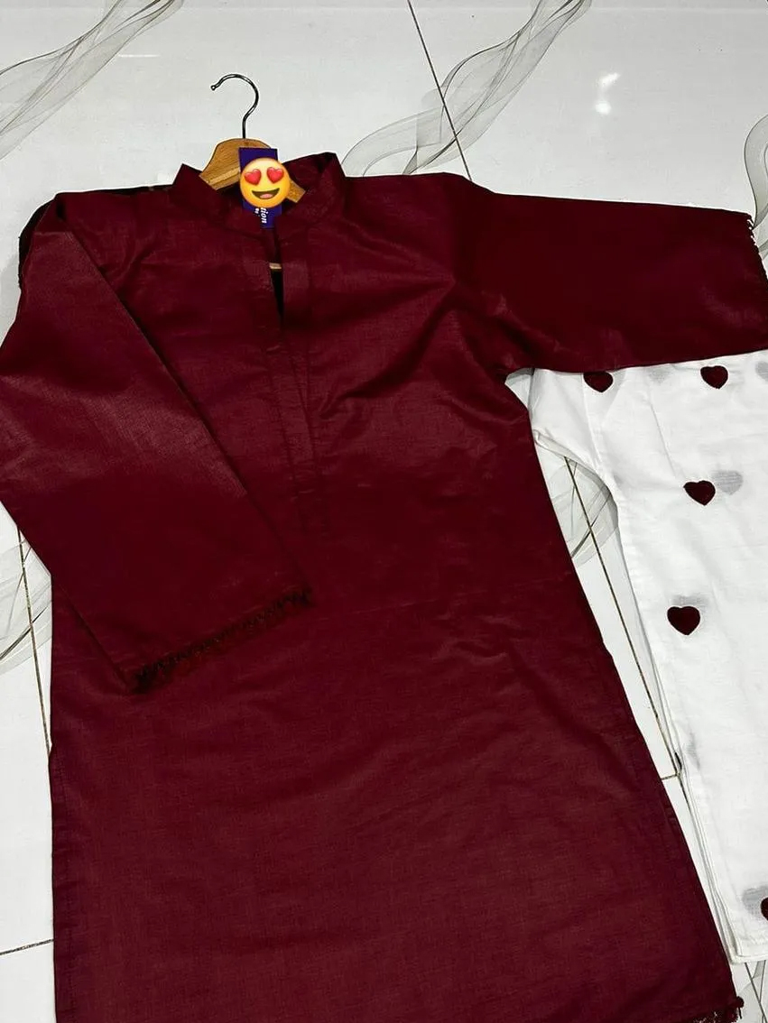 - EID 2026 Arrival – 2-Piece Cotton Set with Lace & Heart Embroidery