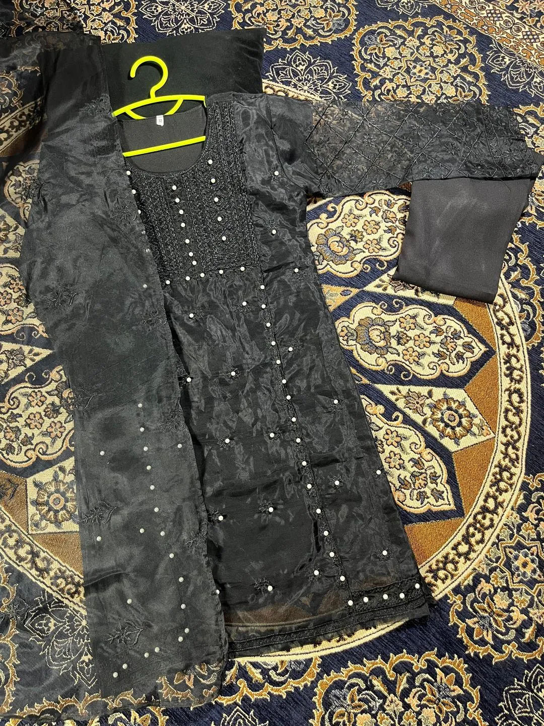 - Work: Heavy Embroidery with Pearl Embellishments (Shirt, Trouser & Dupatta)