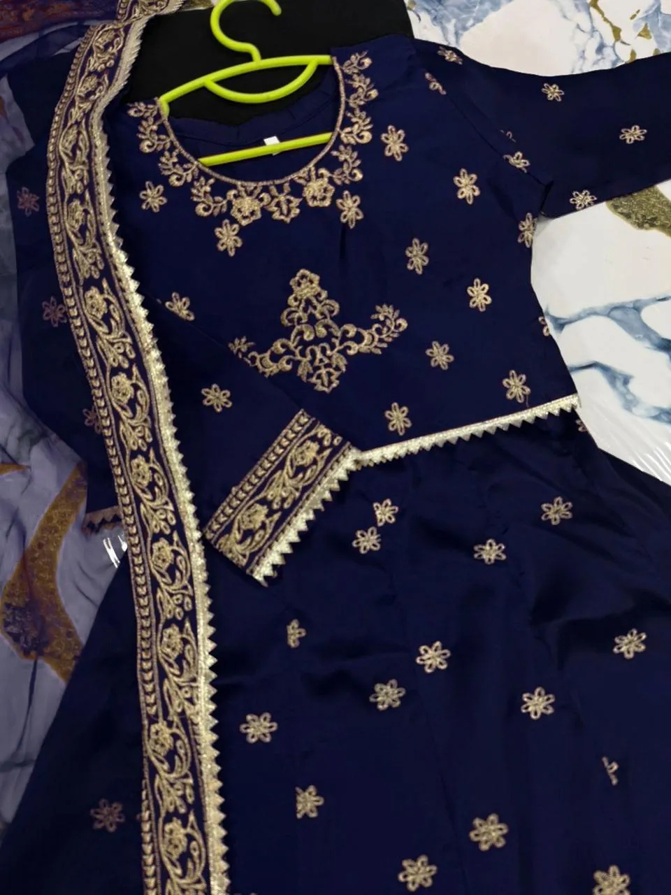 3Pcs Front Embroidered Top With Embroidered Skirt And Four Side Emb Dupatta Kids 3Pcs