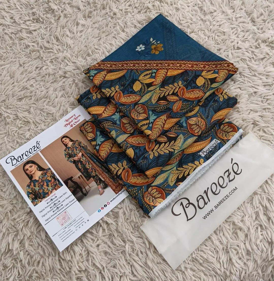 Enhance your wardrobe with this stylish and comfortable 3-piece digital print lawn suit. Crafted from premium-quality lawn fabric, this outfit features vibrant digital prints and a breathable, lightweight feel—perfect for everyday wear and casual occasions.