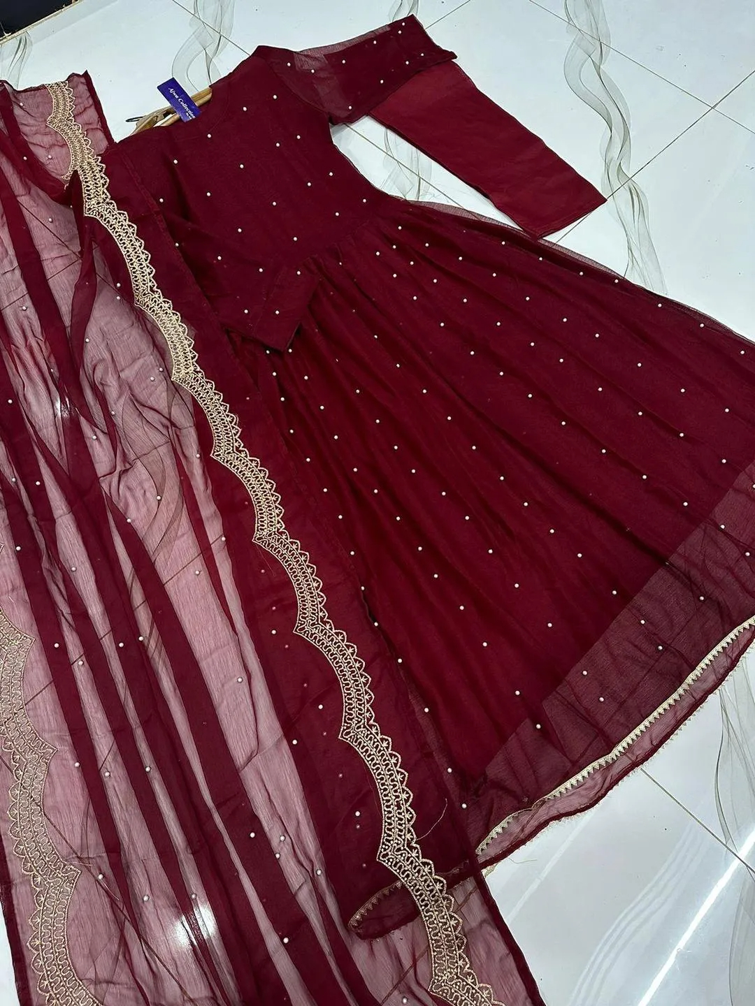 • Embroidered pearl dupatta