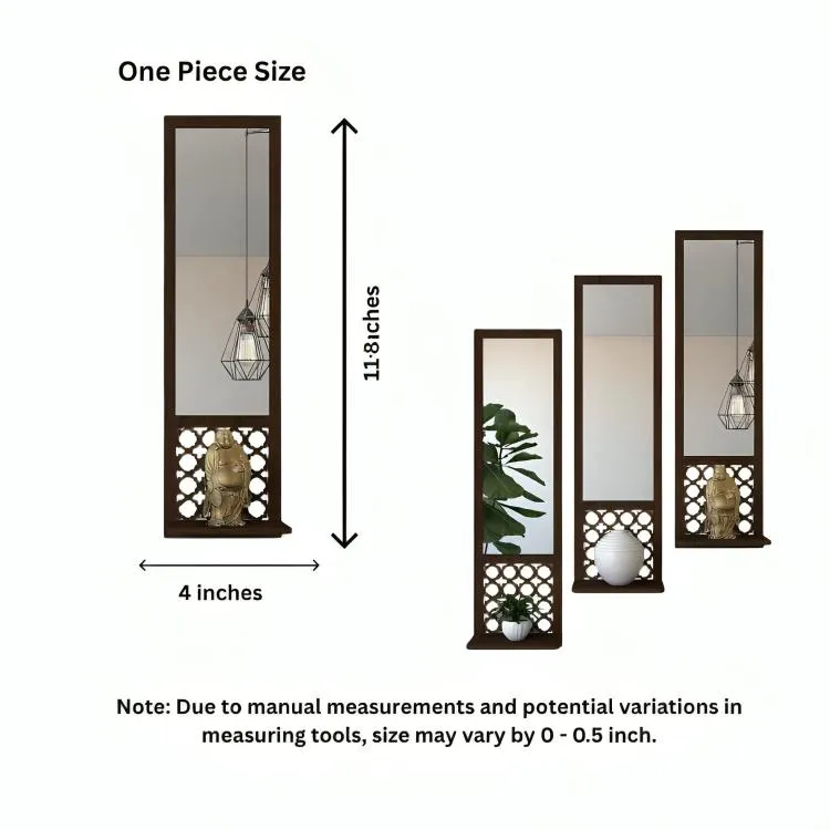 Set of 03 Acrylic Mirror Wooden Wall Shelf For Bedroom I Wall Décor I Decoration Pieces I Decoration | 11.8 Inches Large Size